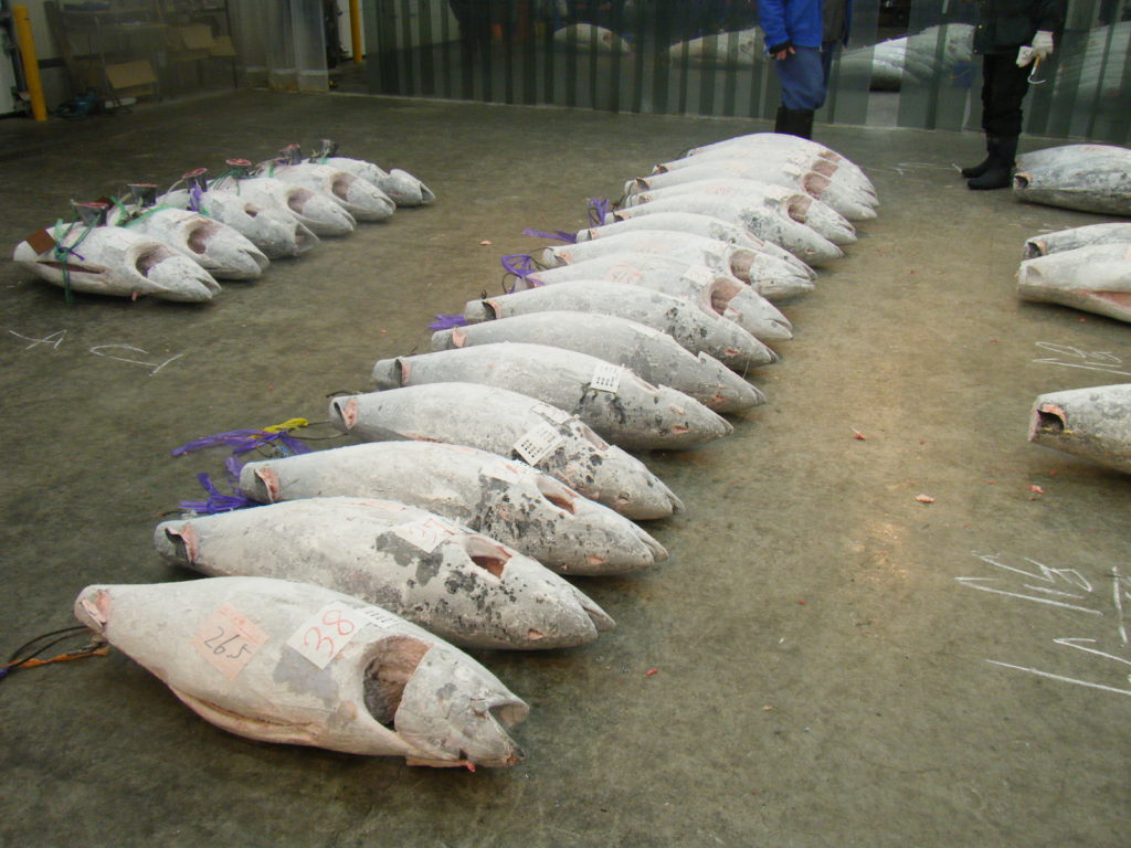 下の写真はある日の 山梨地方市場の水産会社の冷凍マグロ。
